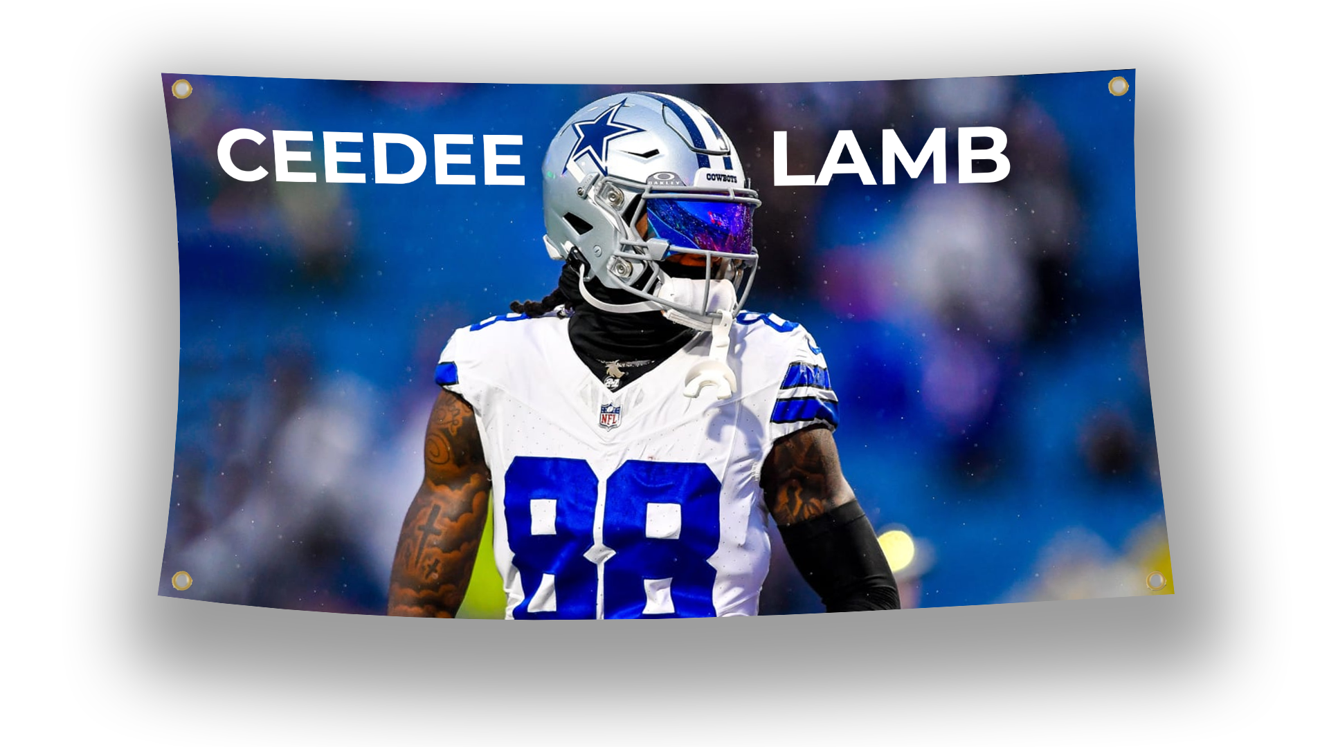Rep your favorite wide receiver with this CeeDee Lamb flag, perfect for every Dallas Cowboys fan. Featuring a dynamic design that highlights Lamb’s playmaking ability, this flag is ideal for game days, tailgates, man caves, dorm rooms, or home décor. Made with durable, high-quality fabric, it’s built to last whether you hang it indoors or outdoors. Show your Cowboys pride and celebrate CeeDee Lamb’s impact on the field with this must-have fan collectible.